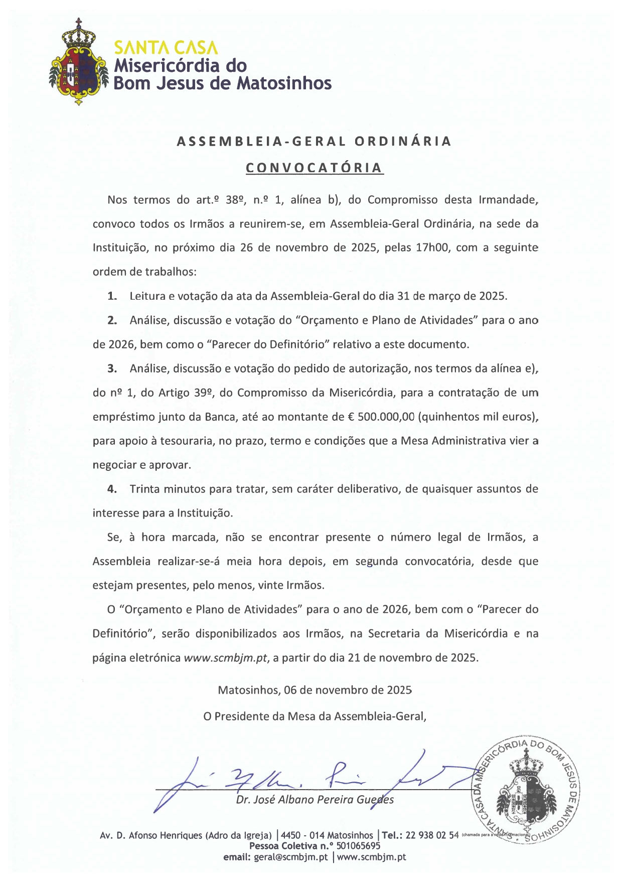 Convocatória Assembleia-Geral Ordinária - 26/11/2025